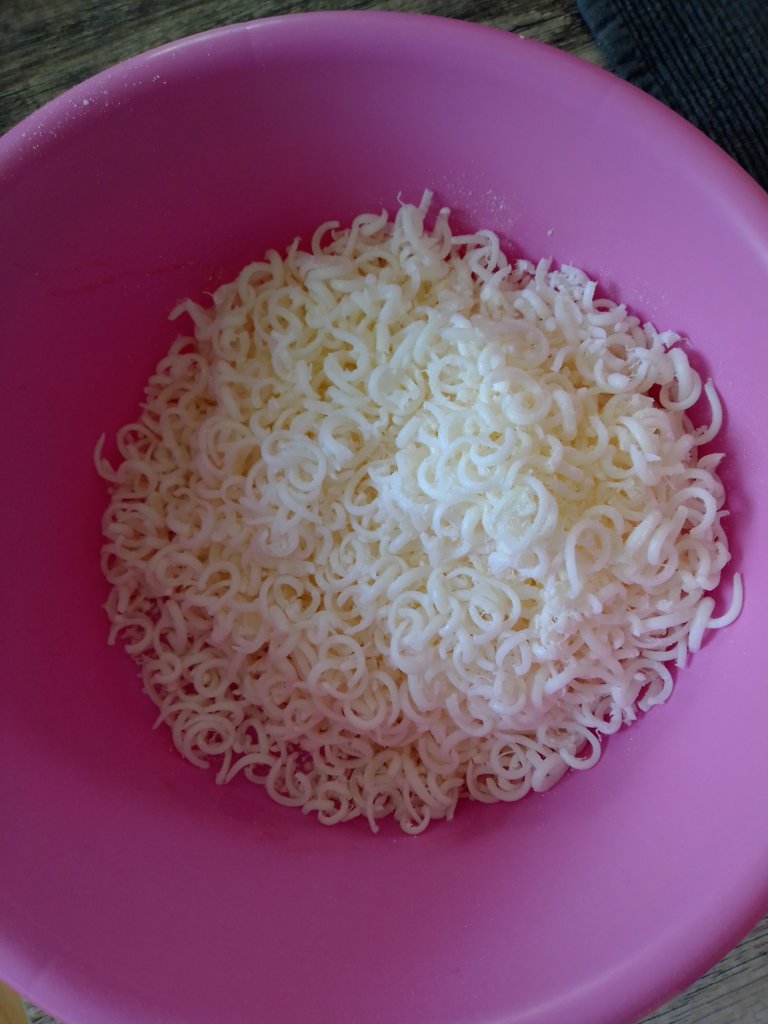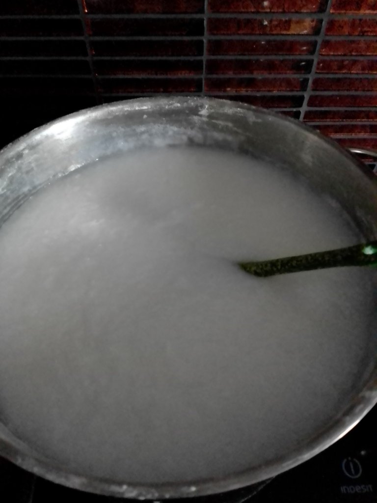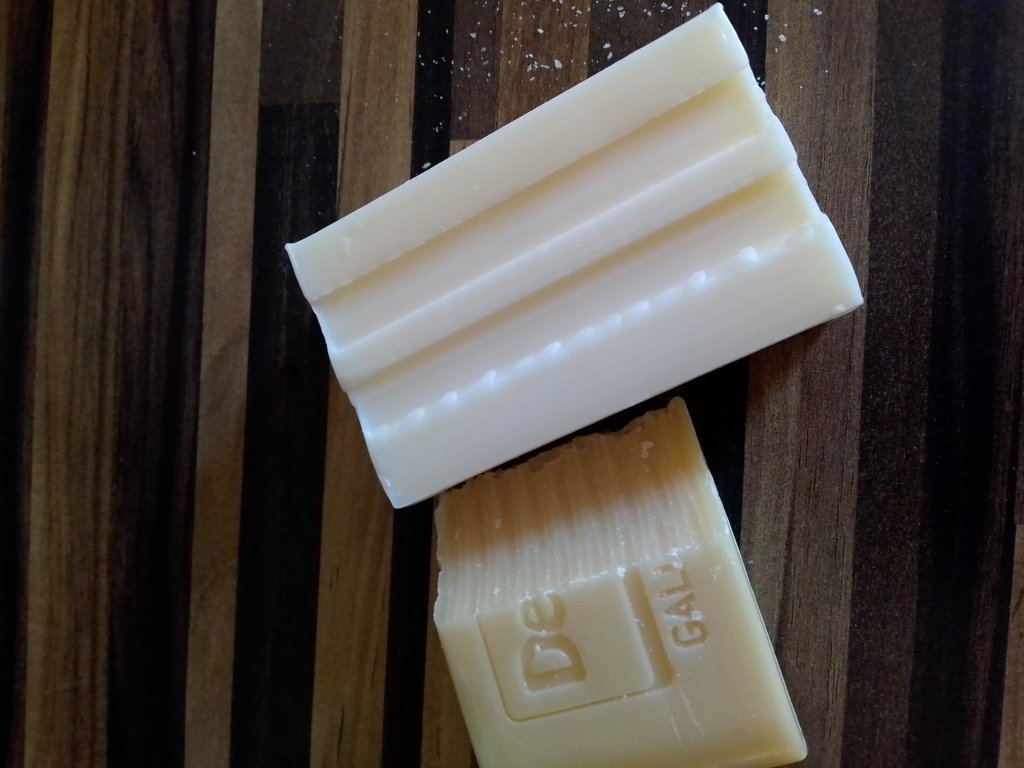 Mein Waschmittel mache ich schon lange selbst. Es ist zwar ein bißchen Arbeit, aber es wäscht sauber (auch die Spielsachen der Kinder von draußen) und ich weiß, was drin ist. Außerdem ist es sehr ergiebig und vor allem auch umweltfreundlich und kostengünstig. Da wir eine große Familie sind, nehme ich immer einen 10 Liter – Topf, der extra dafür reserviert ist. Also so zu sagen mein Waschmitteltopf. Ich nehme 1 Stück Kernseife und 1/2 Stück Gallseife. Das wird beides geraspelt und in den Topf gegeben. Jetzt wird der Topf mit heißem Wasser aufgefüllt. Heißes Wasser aus dem Hahn reicht. Auf keinen Fall kochendes Wasser, da sonst alles verklumpt. Immer schön rühren, damit die Seife sich auflöst. Jetzt kommt noch Waschsoda und Natron dazu. Von jeden etwa 3- 5 Eßlöffel. Das wird mit eingerührt. So nun läßt man es abkühlen, sollte es dabei aber gelegentlich rühren, da es sonst eine Masse wird. Falls Du es vergißt, ist es aber auch nicht so schlimm, dann nimm`einen Pürierstab und mixe das Ganze nochmal durch. Für den guten Duft gebe ich immer ein paar Tropfen ätherisches Öl dazu. Das kannst Du ganz nach Geschmack und Belieben machen. Ich nehme gern Lemongras. Aber auch Lavendel oder Eukalyptus sind geeignet.