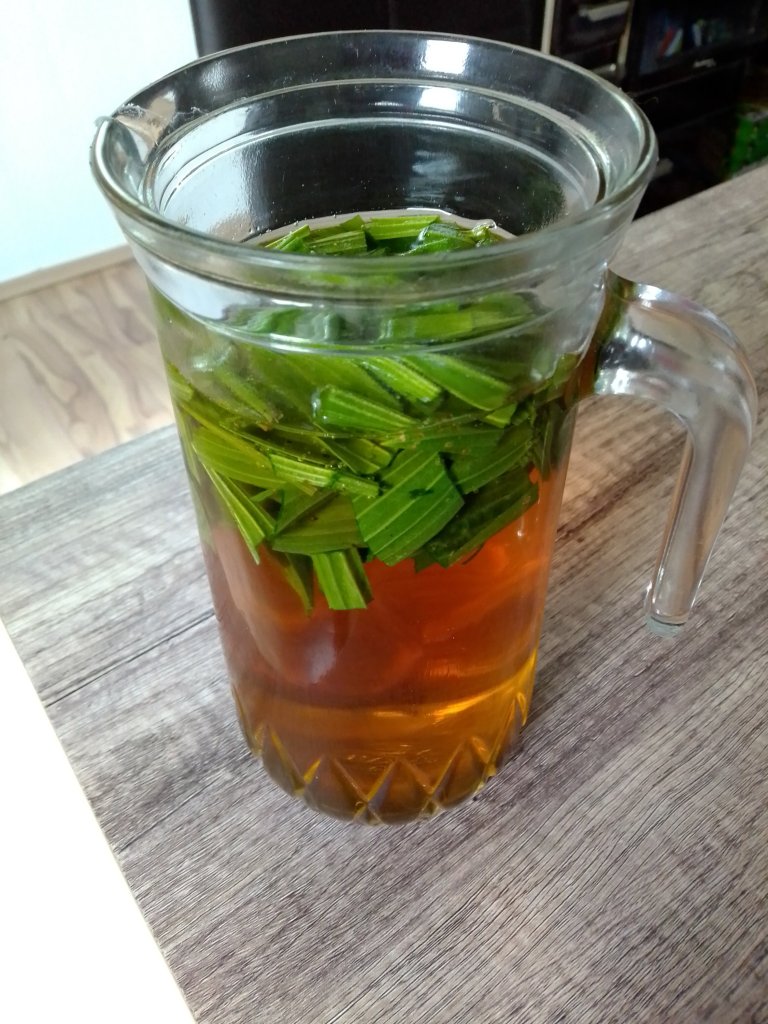 Der erste Spitzwegerich ist auch wieder zu finden. Wir nutzen ihn gerne für Salat und vor allem frisch oder auch getrocknet für Tee. Heute haben wir ihn mal für was ganz anderes benutzt und haben uns ein lecker Getränk gemacht. Ich habe einfach eine Hand voll Spitzwegerich etwas kleingeschnitten und mit einem Liter Apfelsaft übergossen. Über Nacht stehen lassen und genießen.