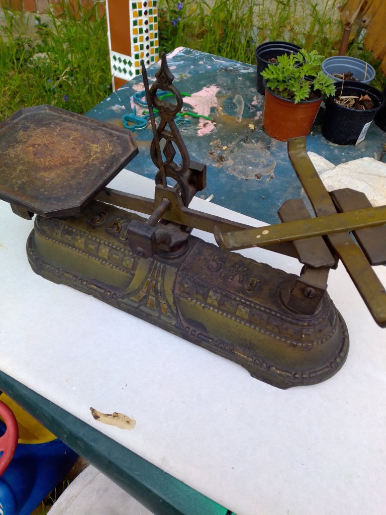 Ich mag zwar das Moderne aber auch die schönen alten, nostalgischen Dinge. Sie erinnern mich daran, daß das Leben auch einfach sein kann und nicht immer unnötig kompliziert werden muß. So z. Bsp. diese wunderschöne alte Waage. Sie ist schon keine Ahnung wie alt und wiegt einfach immernoch so wie sie soll. Sie braucht keinen Strom und keine Batterien. Man kann sie also auch immer benutzen … ganz einfach. Aber zugegeben man hat ihr das Alter auch angesehen und so ganz schön war sie nicht mehr. Also habe ich ihr eine Schönheitskur verpasst und nun glänzt sie wieder in voller Pracht! 🙂