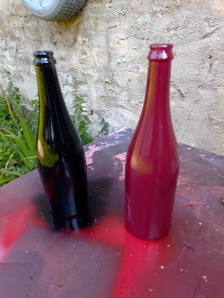 Wir kaufen ja diese hier benutzten Flaschen gar nicht. Weil wir generell schon darauf achten, so wenig Plaste wie möglich zu kaufen und außerdem ist der Inhalt unserer Meinung nach auch nicht der hochwertigste bzw. gesündeste. Naja, aber wenn wir zu Oma oder Opa fahren, was nur sehr selten ist, weil wir sehr weit entfernt voneinander wohnen, dann wollen sie den Kindern was gutes tun. Und mit Kakao kann man ja nichts falsch machen. Jedenfalls haben die Kinder ihn natürlich ausgetrunken, soll ja auch so sein, aber die Flaschen haben wir diesmal mitgenommen und noch was tolles draus gebastelt. Eine bunte Lichterkette mit Batterien hatten wir noch zu Hause und so haben wir uns eine ganz individuelle Beleuchtung für unseren Sonnenschirm gebastelt. Und das ist wirklich eine schöne Girlande geworden.