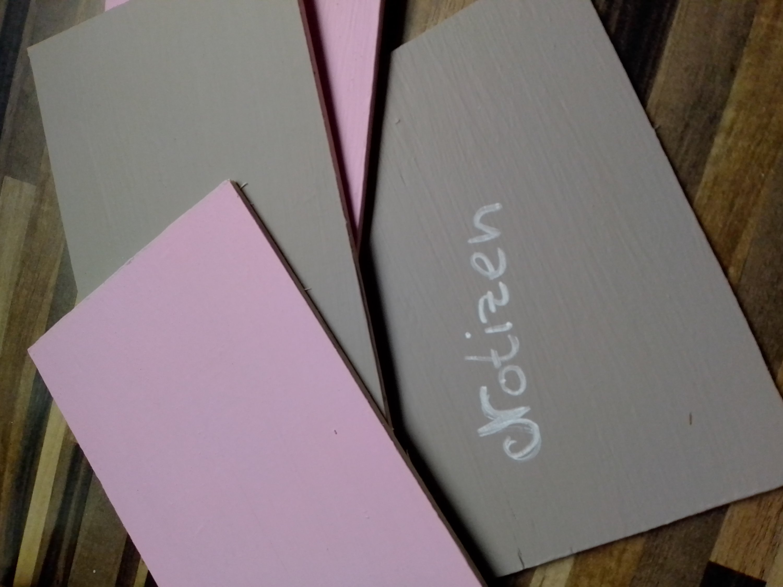 Umweltschutz und der sparsame Umgang mit unseren Ressourcen ist ein wichtiges Thema. Papier ist ja ein nachwachsender Rohstoff und wird zum Glück auch wieder verwertet. Trotzdem verbrauchen wir z.Bsp. unglaublich viele Notizzettel. Also hab‘ ich eine Sperrholzplatte in vier gleiche Teile gesägt und sie mehrfach mit Kreidefarbe gestrichen. Jetzt nehmen wir für kurze Notizen unsere kleinen Mini – Tafeln und einen Kreidemarker (einfache Kreide geht auch, schreibt aber nicht so fein oder man müsste sie anspitzen). Wenn die Notiz nicht mehr gebraucht wird, wird sie einfach feucht abgewischt.😊