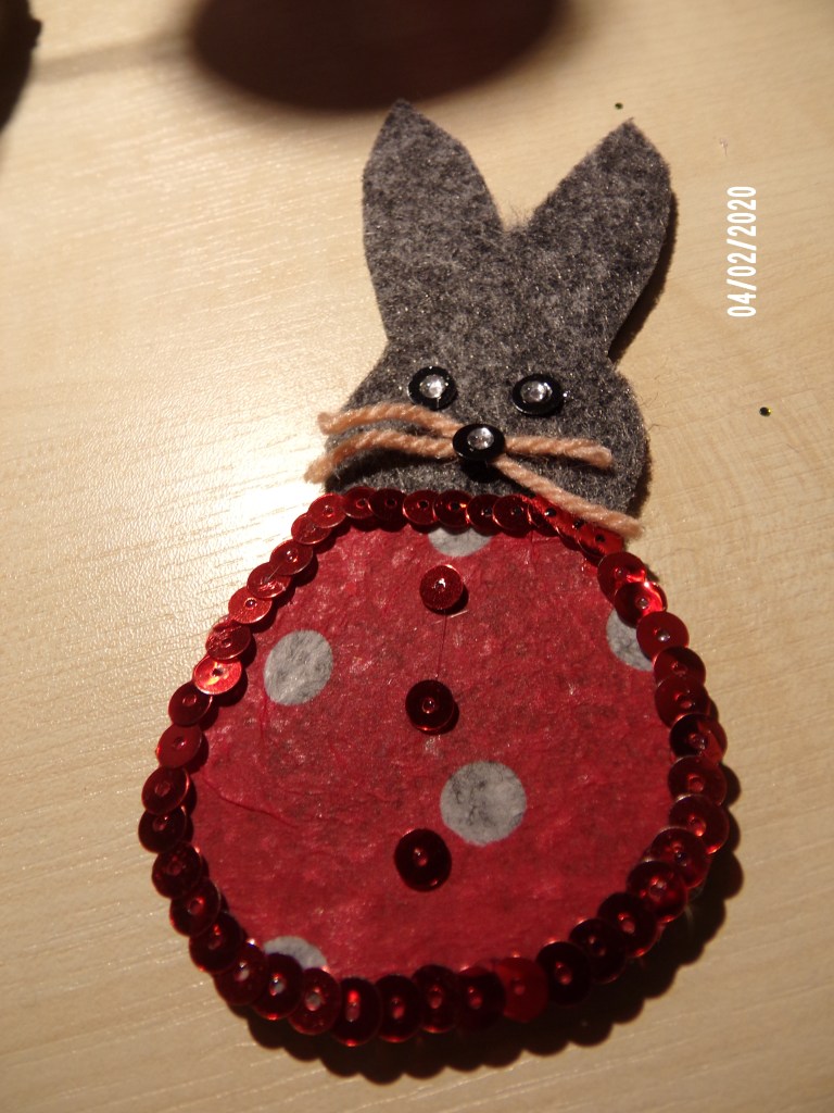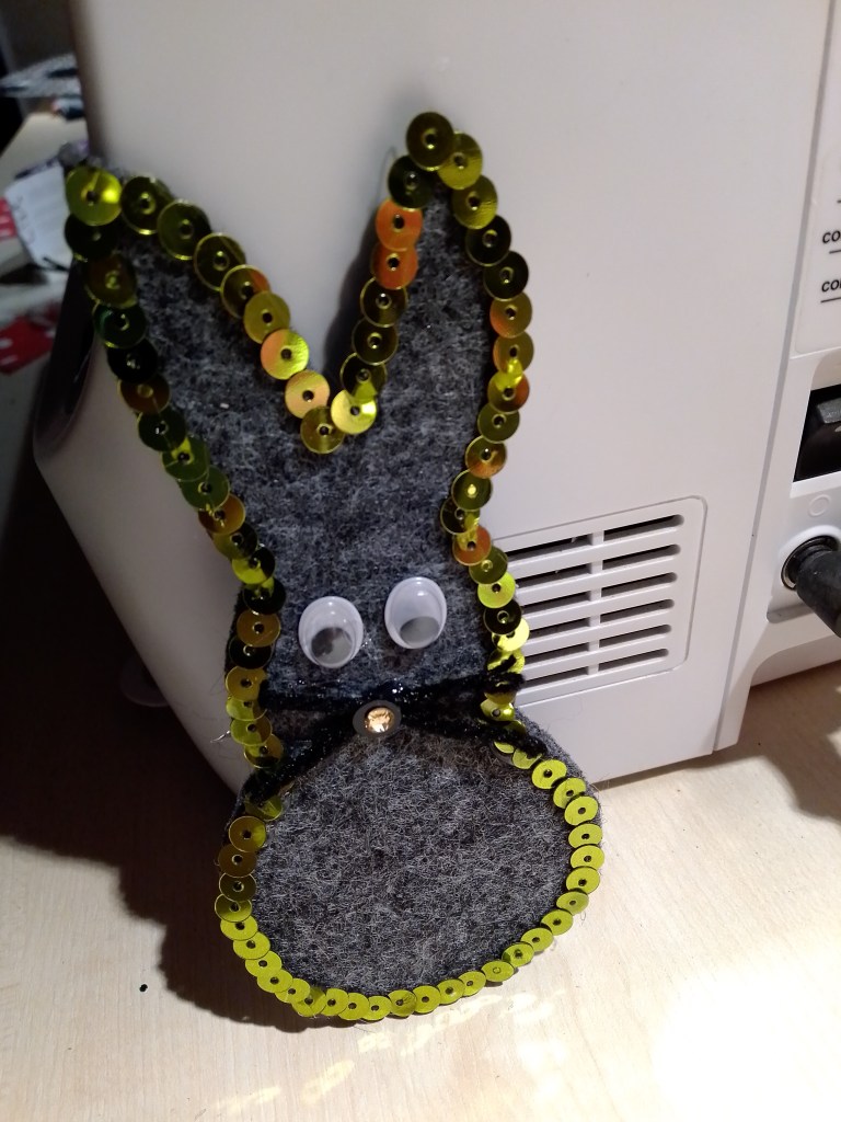 Heute habe ich mal eine kleine Bastelei zu Ostern. Ein paar kleine Osterhasen aus Filz. Ich habe grauen stabilen Filz genommen (er muß schon etwas dicker sein, da die Figuren ja sonst nicht stabil sind) und habe eine Hasengrundform ausgeschnitten. Meine sind ca. 12cm hoch. Dann habe ich den Filz mit Pailletten beklebt. Das ist zwar etwas mühevoll, aber der Aufwand lohnt sich. Noch ein paar Augen aufgeklebt und fertig. Die Gestaltungsideen sind echt vielfältig. Du kannst sie mit Stoff bekleben, mit Perlen schmücken oder auch besticken. Das ist auch eine kleine Bastelei die sehr gut für Kinder geeignet ist, da sie nicht zu lange dauert.
