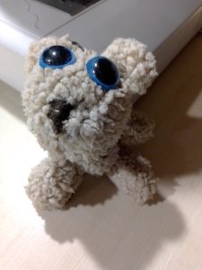 Wer näht, beim dem fallen immer Stoffreste an. Aber was macht man damit, wenn sie zum Wegwerfen noch zu groß erscheinen? Da hab` ich mir die Arbeit gemacht und habe mal einen Mini – Teddy genäht. Ich gebe zu, daß war ein bißchen fummelig, aber das Ergebnis zählt am Ende und das ist doch ganz gut geworden.